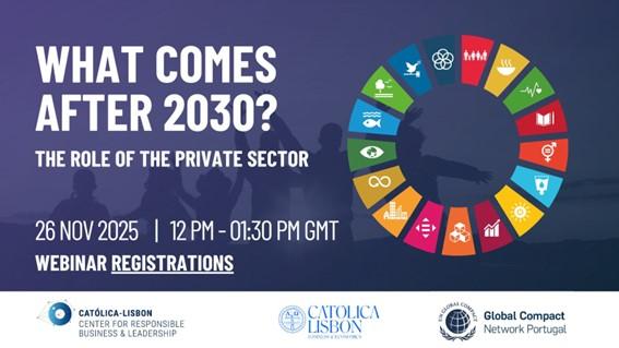 To explore this topic, the Centre for Responsible Business & Leadership at CATÓLICA-LISBON, with the UN Global Compact Network Portugal, is hosting the second session of the webinar series “What Comes After 2030? The Future of the SDG Agenda.”