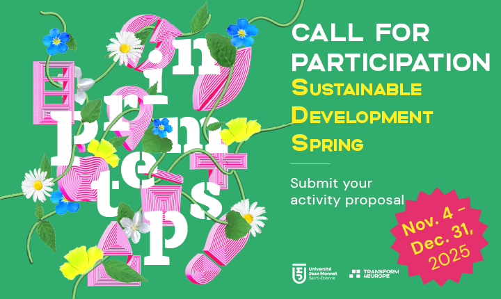 The Spring of Sustainable Development 2026 will take place from March 16 to April 3 at Université Jean Monnet (St-Etienne, France) and Universidade Católica Portuguesa's staff and students can join online, as part of the Transform4europe Alliance.