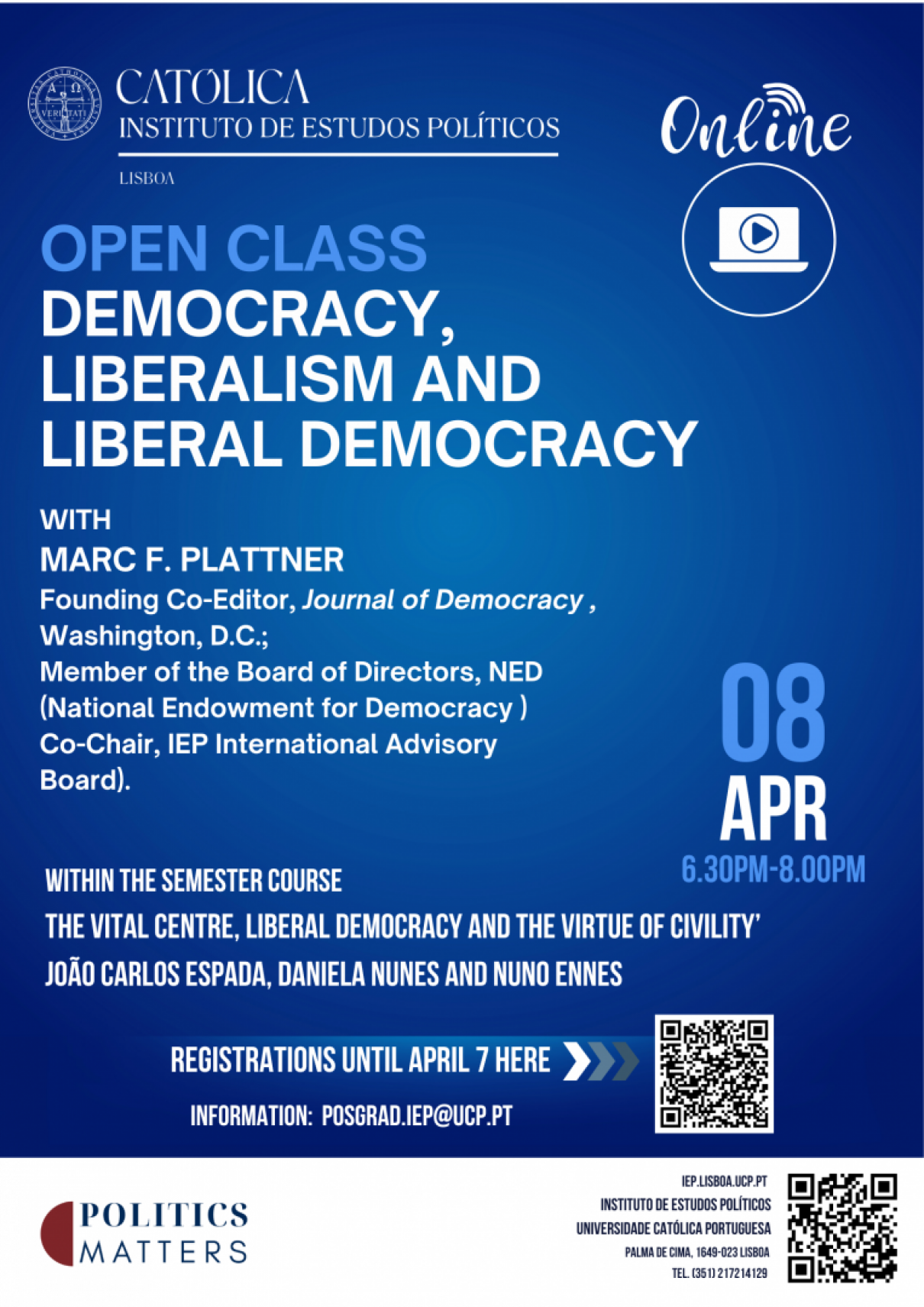 O Instituto de Estudos Políticos organiza a aula aberta: "Democracia, Liberalismo e Democracia Liberal”, no dia 8 de abril, pelas 18h30.