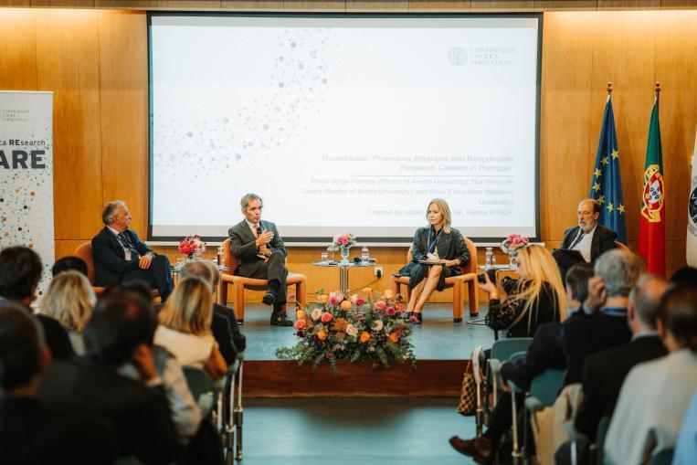 Posteriormente, decorreu uma mesa-redonda onde se juntaram os reitores Paulo Jorge Ferreira (Universidade de Aveiro), Rui Vieira de Castro (Universidade do Minho), Sílvio Fernandes (Universidade da Madeira), com a moderação de Isabel Capeloa Gil, para discutir o tema «Promover carreiras de investigação atrativas e responsáveis em Portugal».