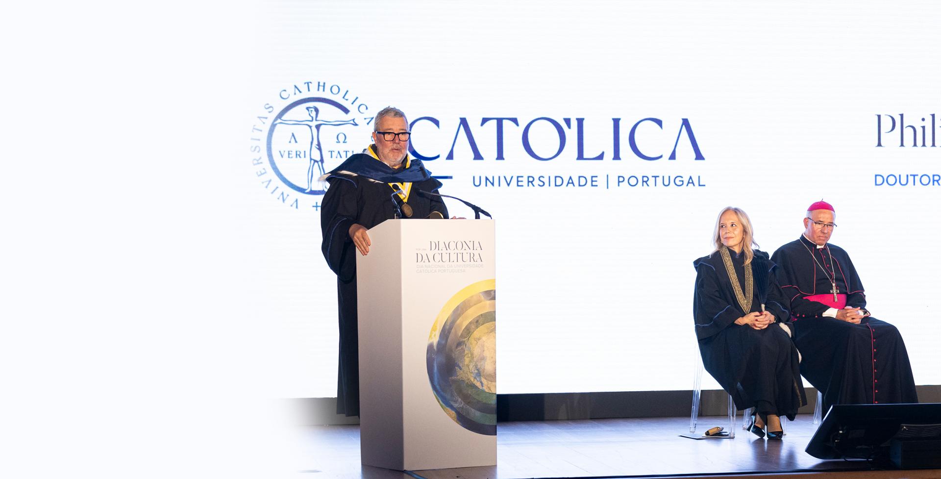 «O serviço — a diaconia — que presta à sociedade não é apenas a formação de profissionais competentes, mas também a salvaguarda de uma razão aberta, capaz de dialogar com o transcendente. Leva à concretização e à prática da transformação do mundo, esse mesmo horizonte contemplado», sublinhou por sua vez o magno chanceler da Católica, D. Rui Valério, no encerramento do evento.