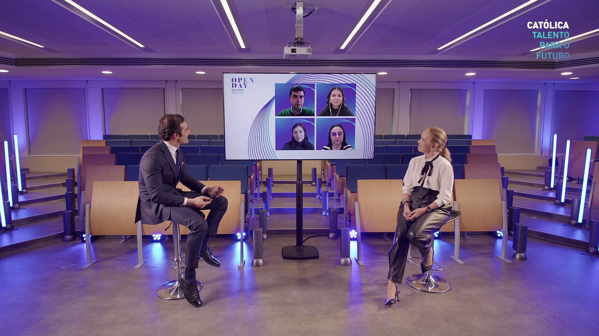 A sessão principal deste evento aconteceu às 16h30, em live streaming. Foi um momento de reflexão e debate acerca do “Talento para o Futuro”, com a presença da Reitora da UCP, Isabel Capeloa Gil, e moderação de João Póvoa Marinheiro, jornalista e antigo aluno da Faculdade de Ciências Humanas da Católica.