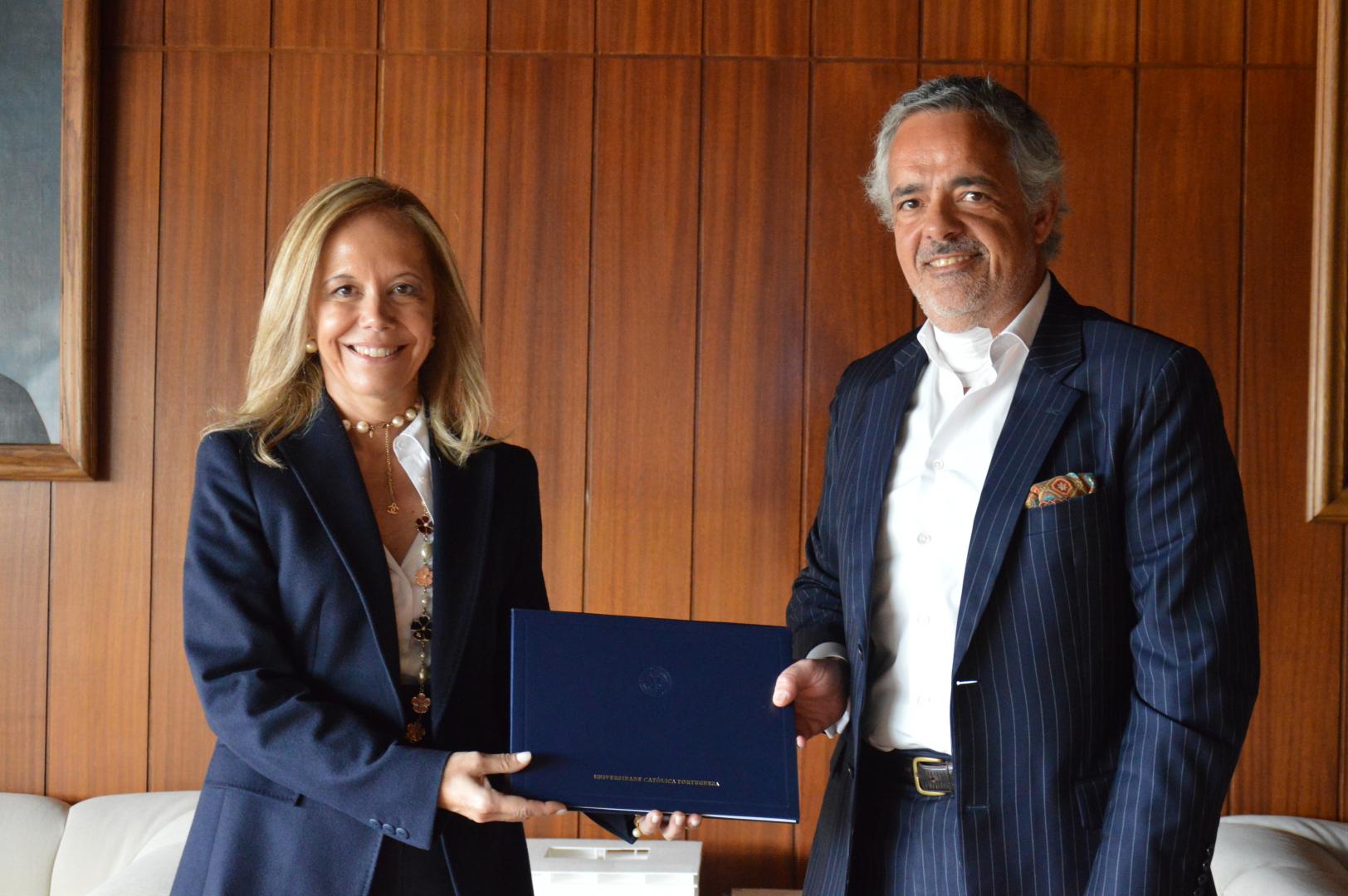 O acordo foi assinado numa cerimónia virtual, onde também estiveram presentes o Diretor de Global Engagement da Católica, Francisco Mendes-Palma, e a Diretora de Internacionalização e Mobilidade da USALTA, Valéria Vorano.